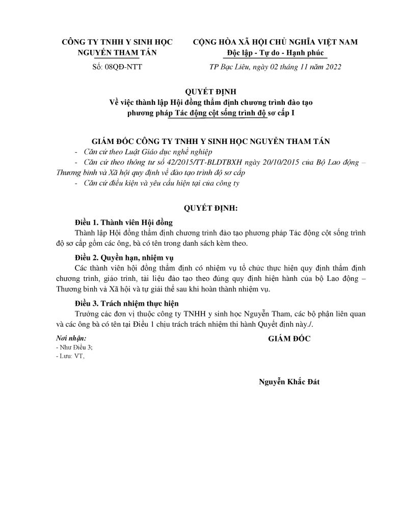 – Phòng tuyển sinh Trung tâm Tác động cột sống Nguyễn Tham Tán